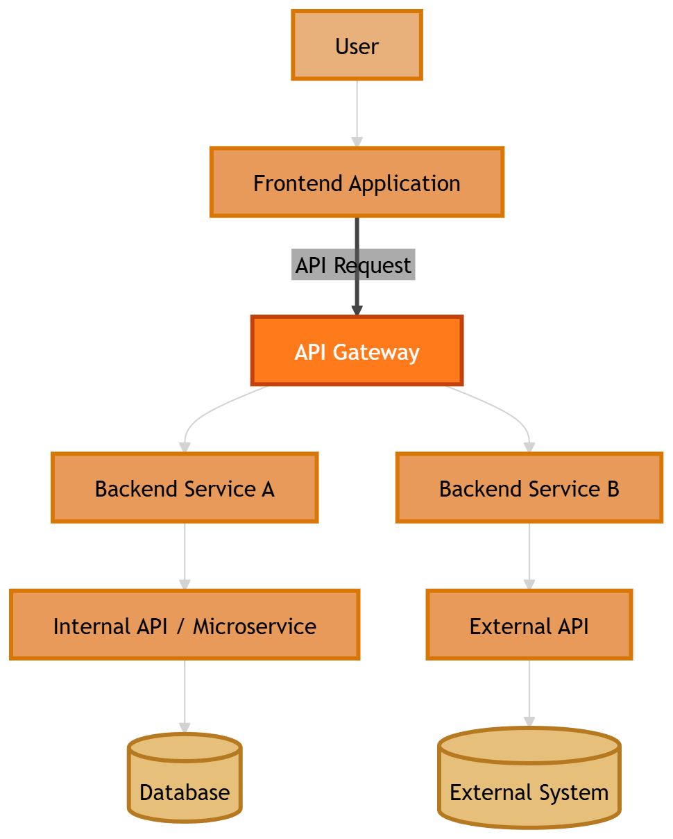 The frontend calls an API gateway.