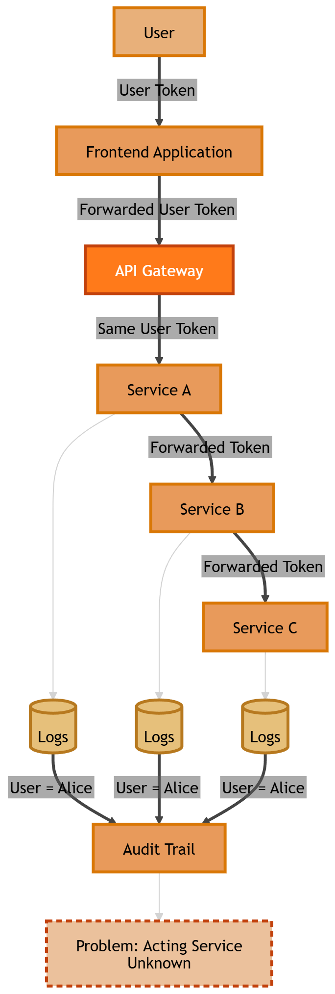 How should user identity and permissions be securely propagated across these services? A common but problematic approach is simply forwarding the original user access token across all services. While this works functionally, it introduces several security and operational risks.