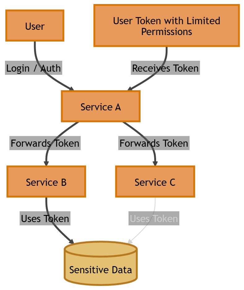 Forwarding user tokens across services introduces another problem: excessive privileges. The original access token often contains permissions intended only for the initial service. When that token is forwarded to downstream services, those services may unintentionally gain access to more permissions than they actually require. This violates the principle of least privilege, increasing the risk surface of the system.